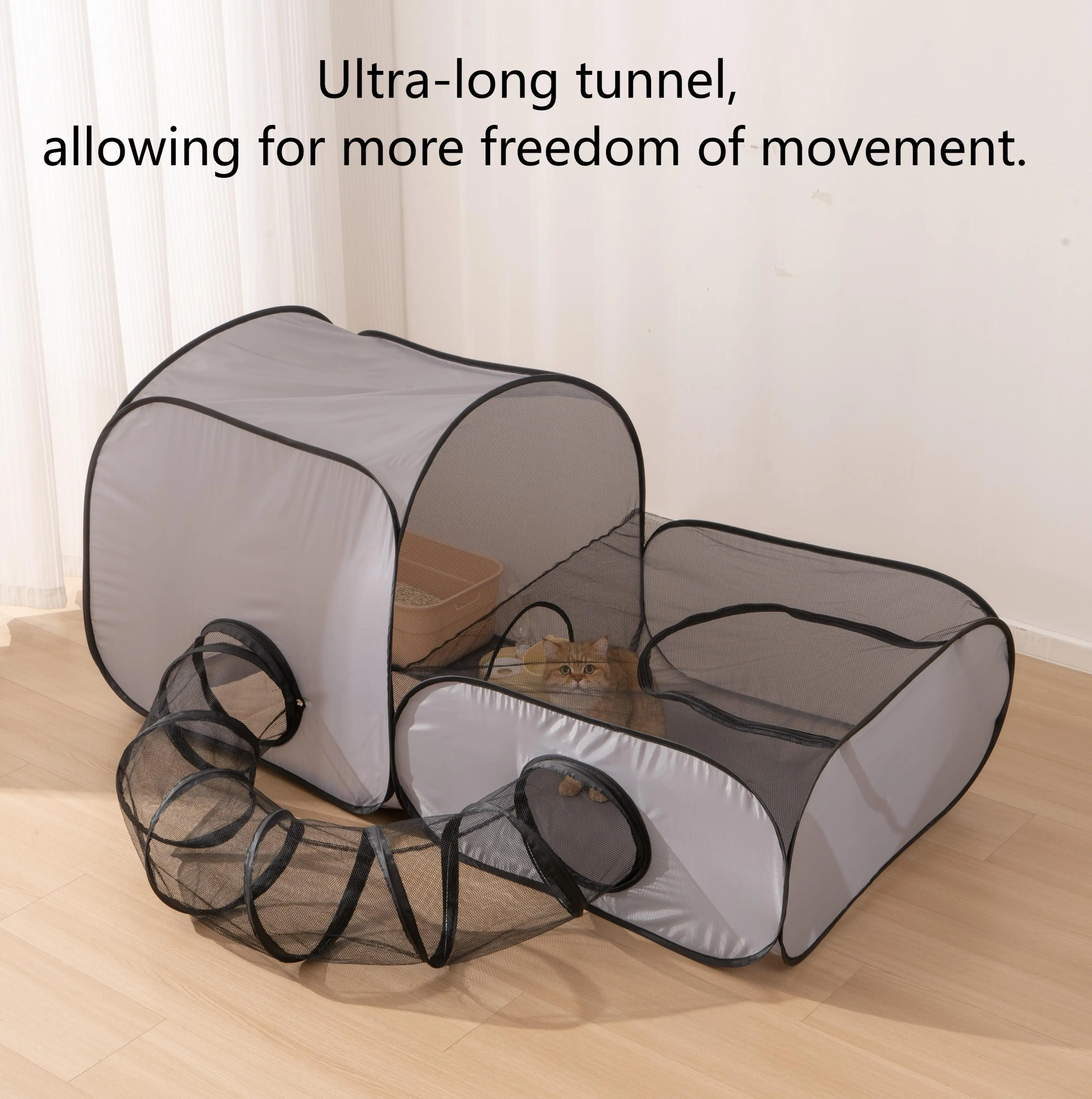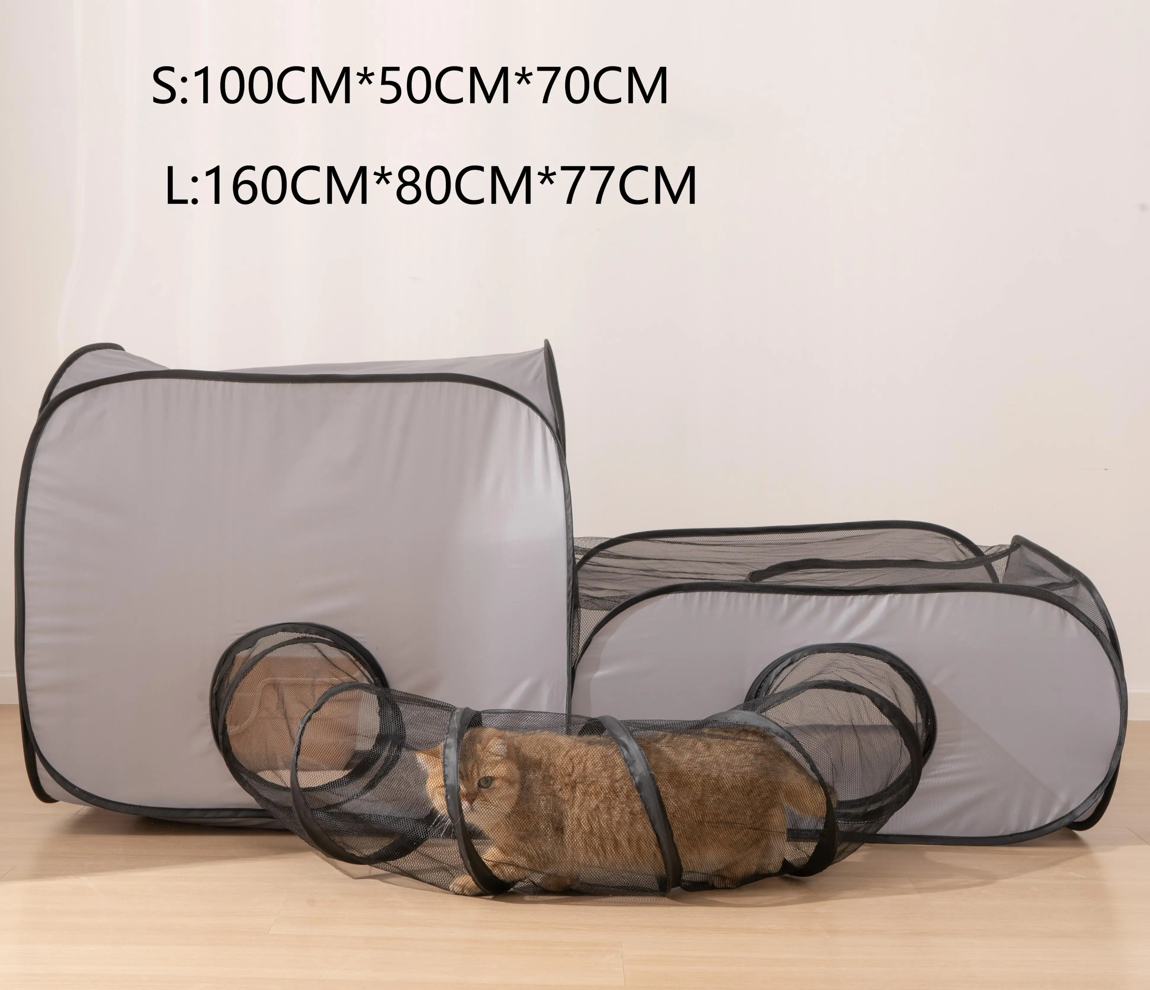 Square Gray Cats and Dogs Delivery Room Hard Oxford Cloth with a Play Tunnel Foldable Pets Nest